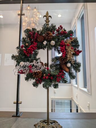 このリースをお飾りいただくことで、クリスマスシーズンがぐっと華やかにお過ごしいただけることと思います。